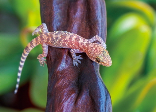 Geckos are small lizards found in warm places around the world. They can climb walls and even walk