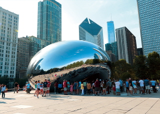 In Chicago, Illinois, there is a big shiny sculpture called ¡°Cloud Gate.¡± It is shaped like a bea