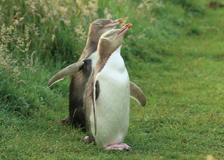 The yellow-eyed penguin is one of the rarest penguin species in the world. It lives in New Zealand.